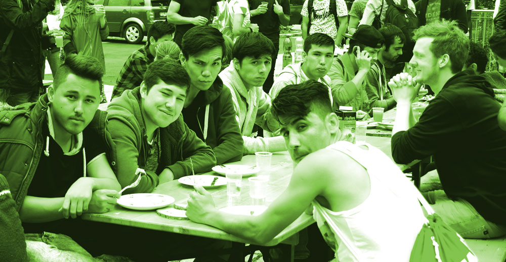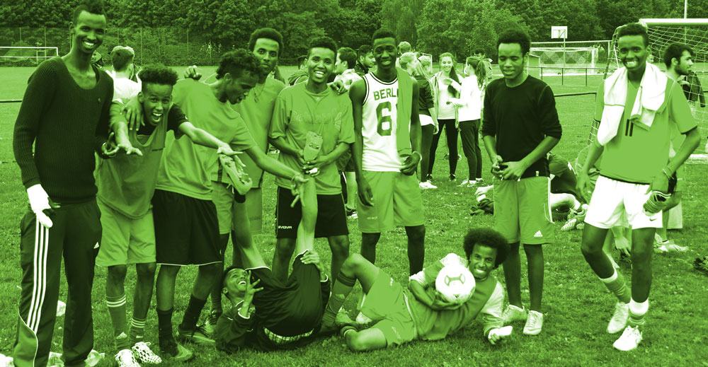 Das singt in diesem Moment der 19-jährige Ali aus Somalia. Vor eineinhalb Jahren floh der 19-Jährige alleine. Er wohnt im Kieferngarten, dort wohnt Ali mit vielen Flüchtlingen, die ohne ihre Familien nach München gekommen sind. „Ich wohne seit sechs Monaten im Kieferngarten, konnte seitdem nicht zur Schule oder zu einem Deutschkurs gehen.“ Er sagt das auf Somalisch.