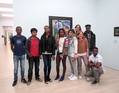 Wir waren in einem Museum und das heißt Lenbachhaus. Hier hat Eddi erklärt, was ihm gefällt. Das Bild ist von Franz Marc. Er war sehr berühmt. Wir waren sehr konzentriert, was Eddi uns erzählte. Es hat uns gefallen, aber wir haben uns ein anderes Bild ausgesucht. Hanadi & Sakinatou